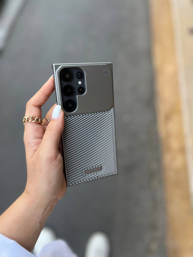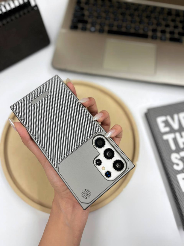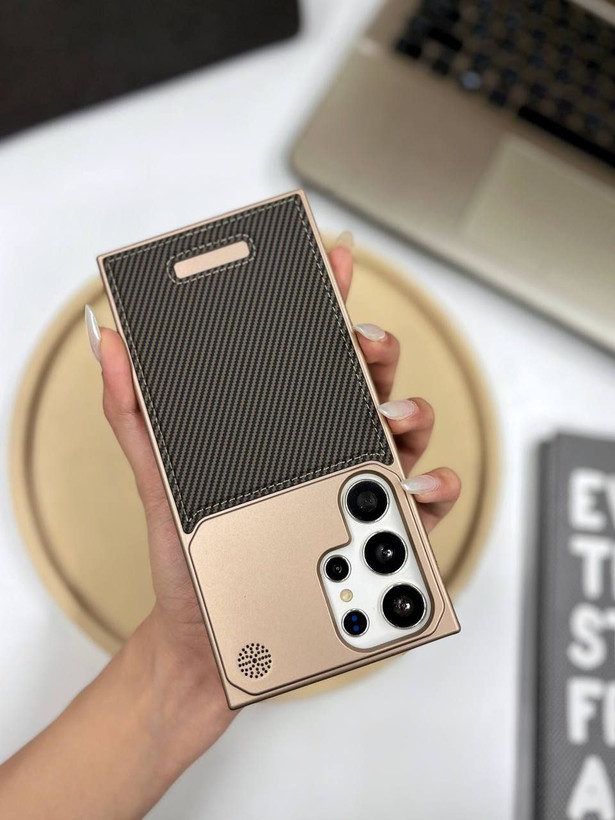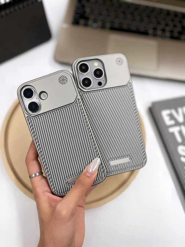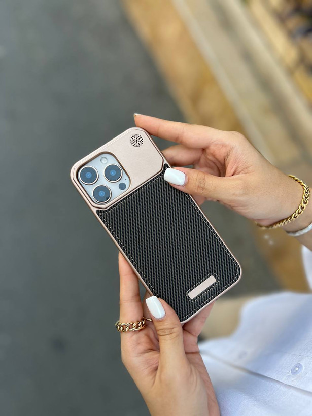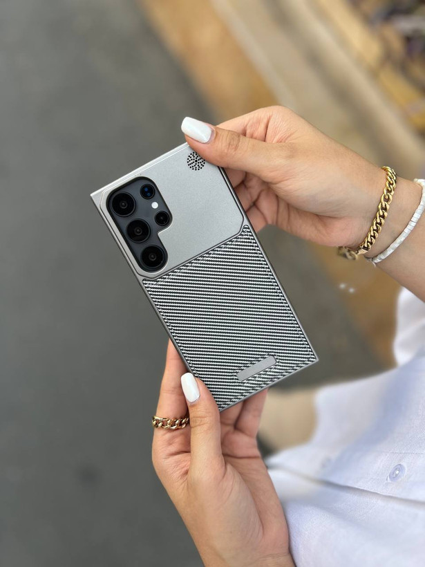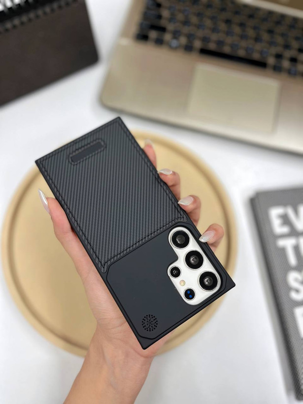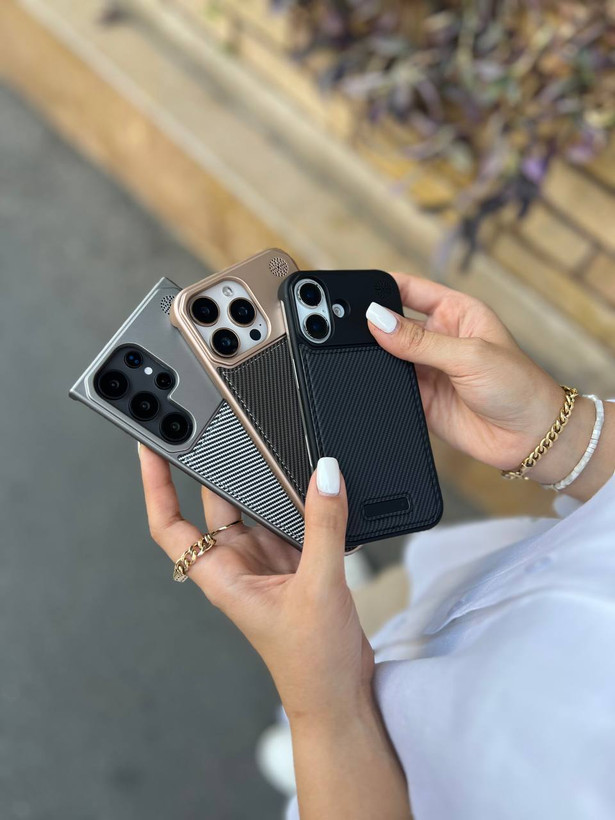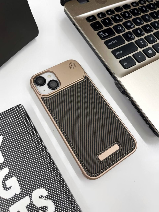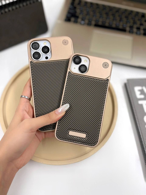 کاور گوشی برندQ series مدل Leather metal luxury طرح کربن ( سامسونگ و آیفون) کد 00201721-L