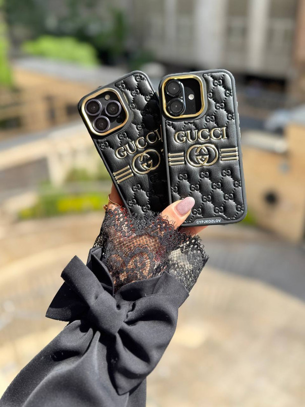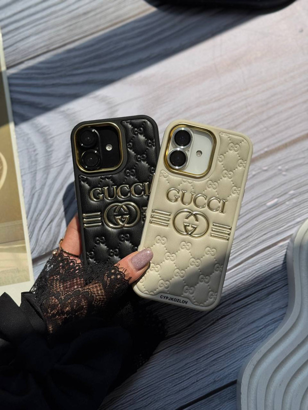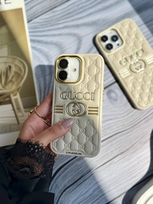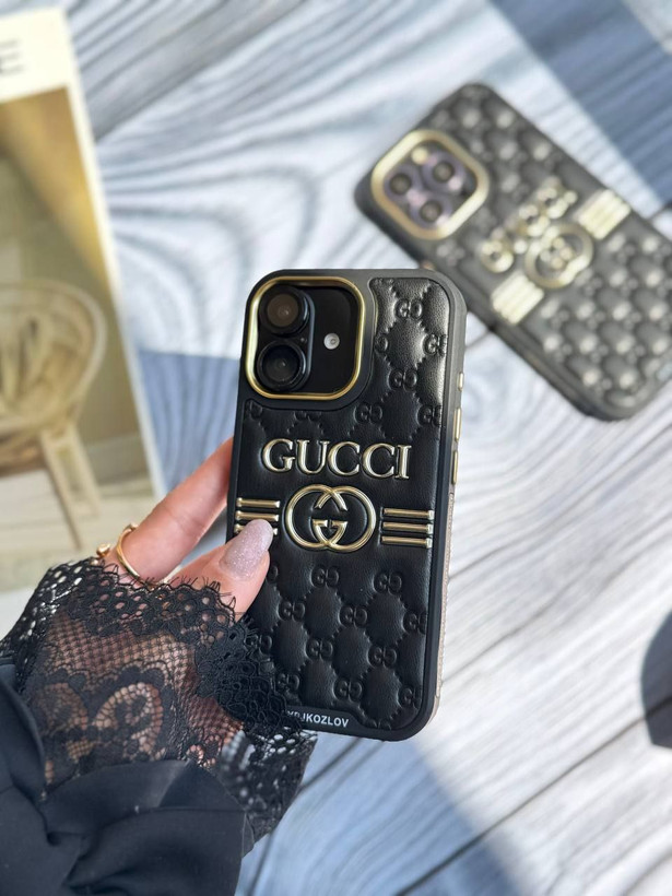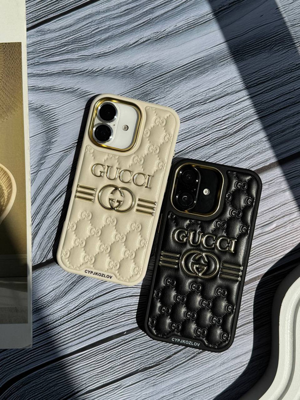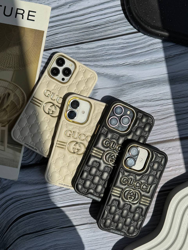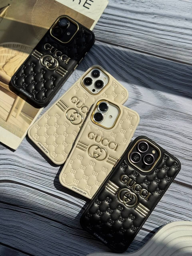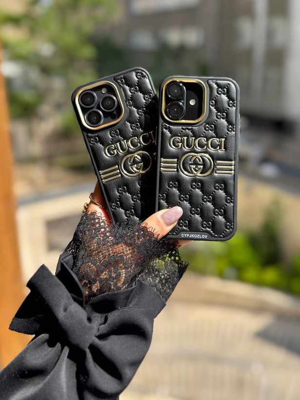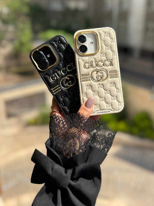کاور گوشی مدل Gucci پشت قاب چرمی لوگو برجسته طلایی (فقط آیفون)کد C1998-M