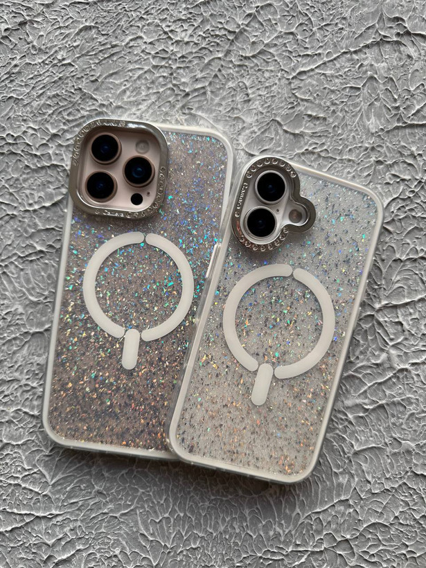 کاور گوشی مدل ریبون اکلیلی مگسیف دار دور لنز نگین کاری (فقط آیفون)
