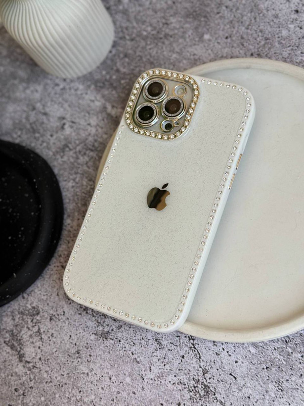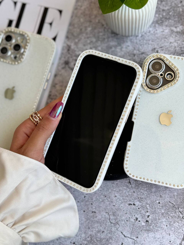 کاور گوشی مدل Shiny Bride نگینی شاینی نگین در نمای جلوی قاب لوگو اپل فلزی ( آیفون ) کد C2065m