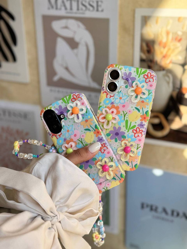 کاور گوشی مدل باغچه با آویز گل ها برجسته (آیفون) کدC207M