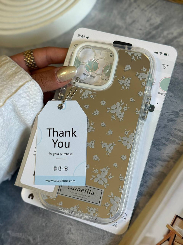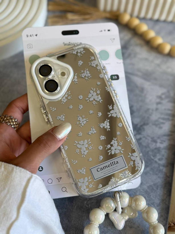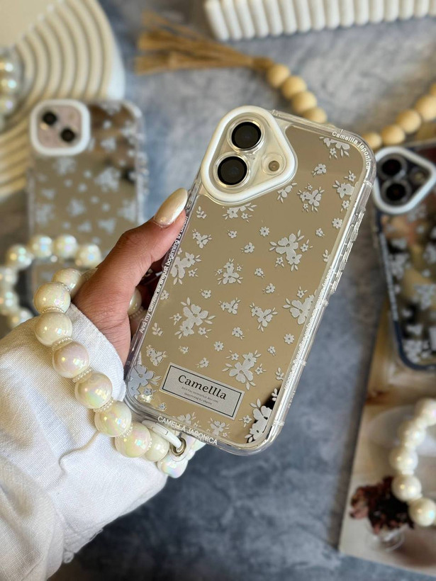 کاور گوشی مدل گل کاملیا با آویز مروارید آینه ای (آیفون ) کد C2102M