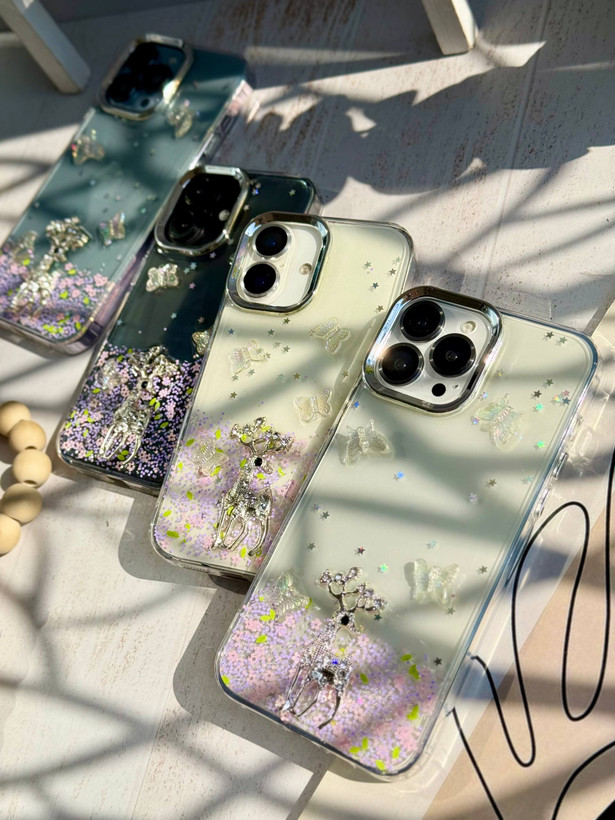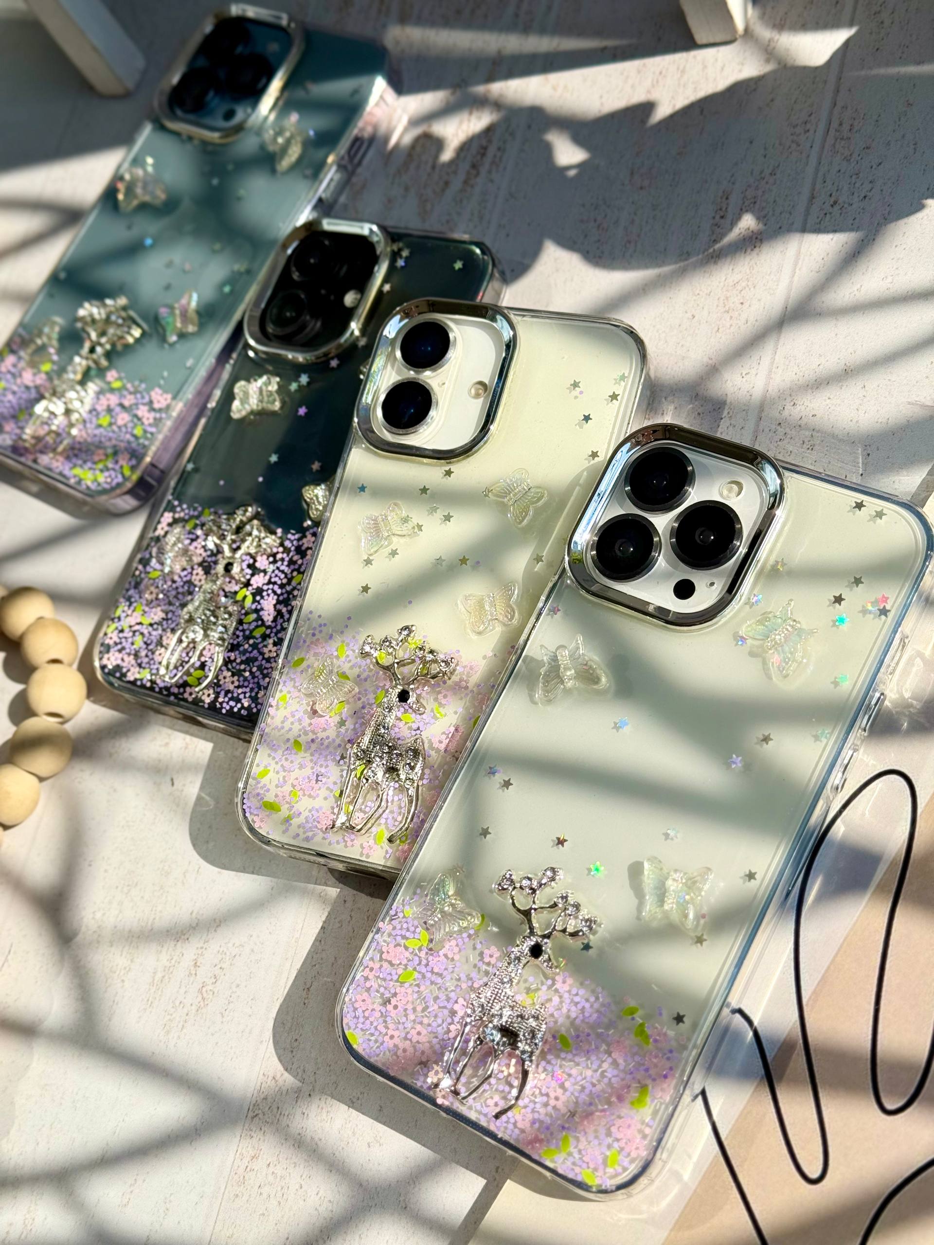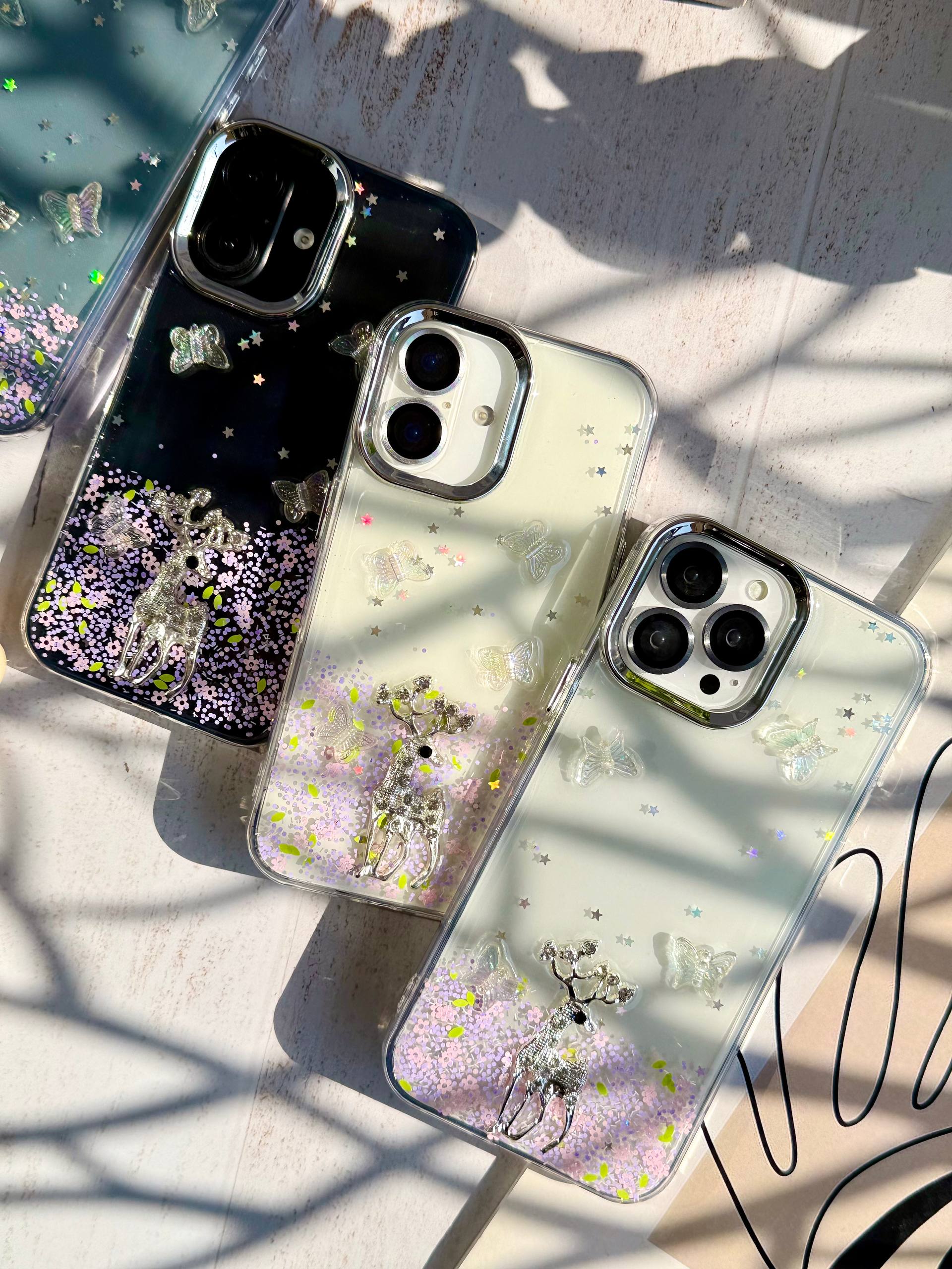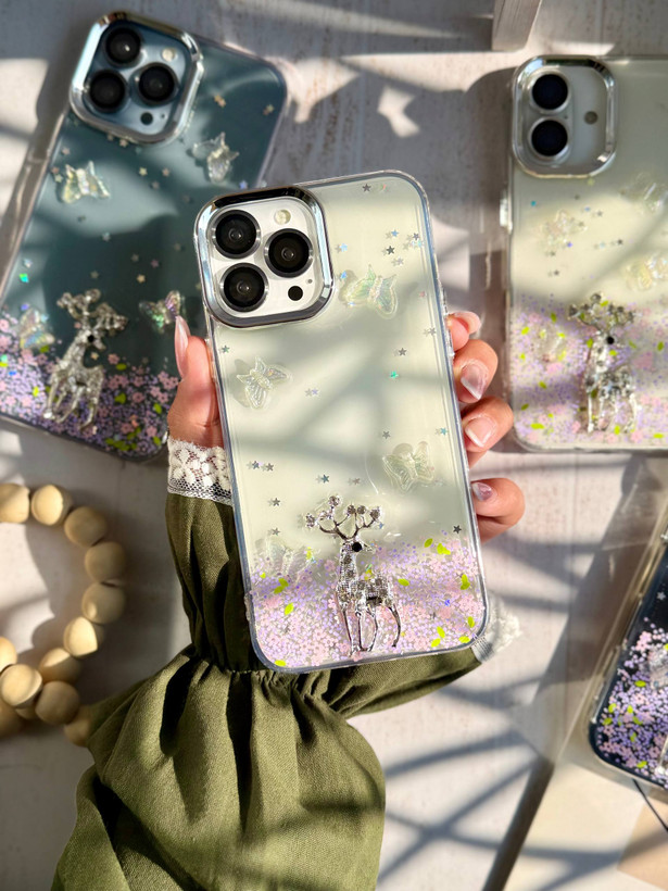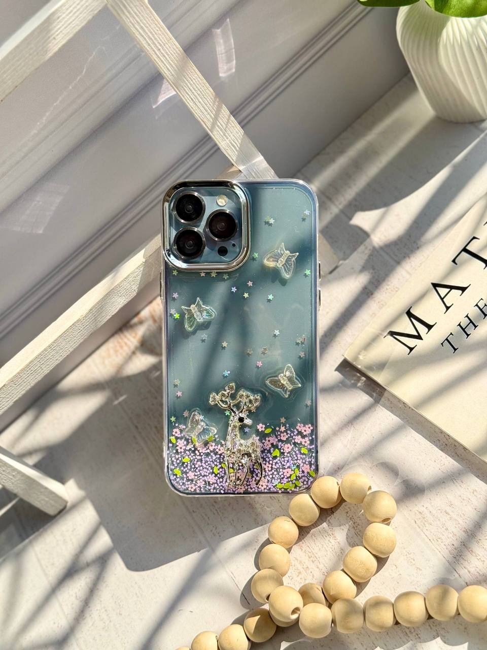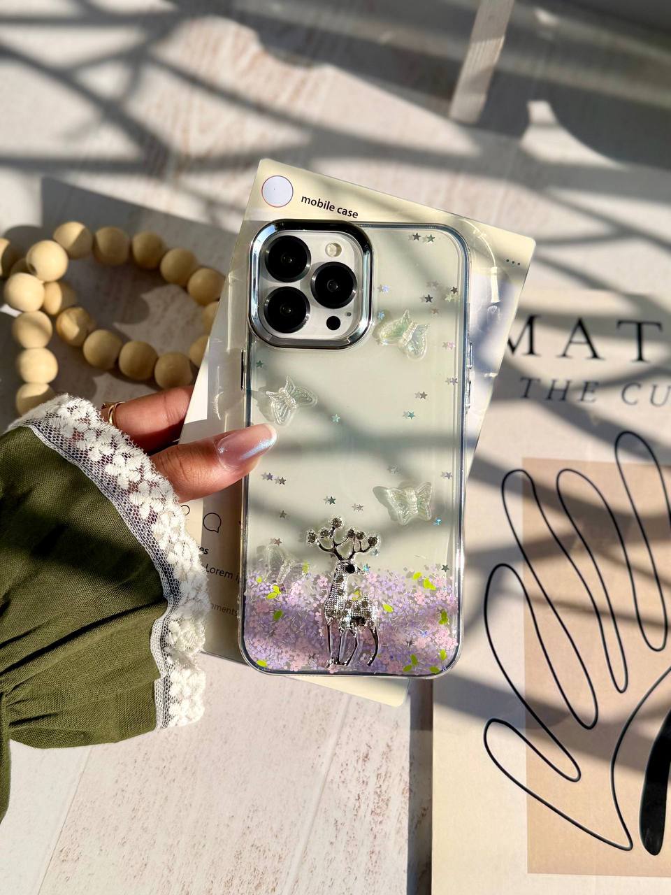 کاور گوشی مدل گوزن در جنگل بلورین Deer in crystal forest رزینی برجسته دکمه فلزی (آیفون )کد C2145M