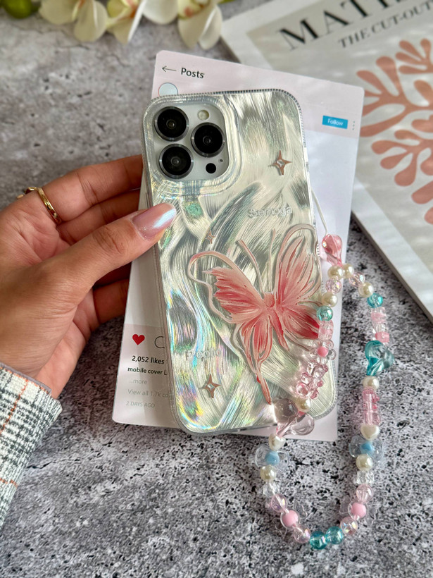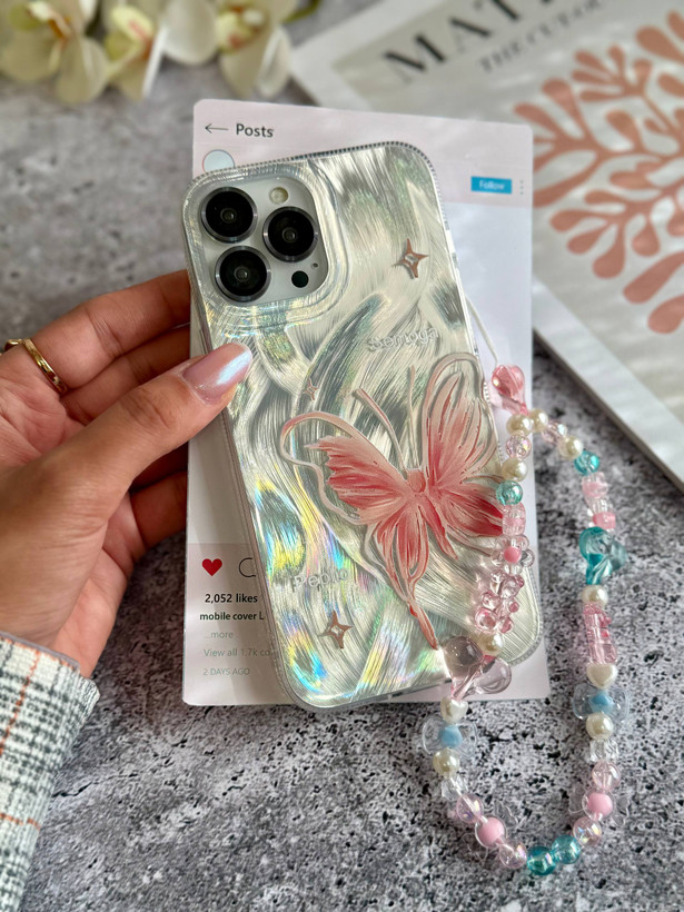 کاور گوشی مدل پروانه رز فلای با آویز (آیفون،سامسونگ،شیائومی ) کدC2148M C2147M
