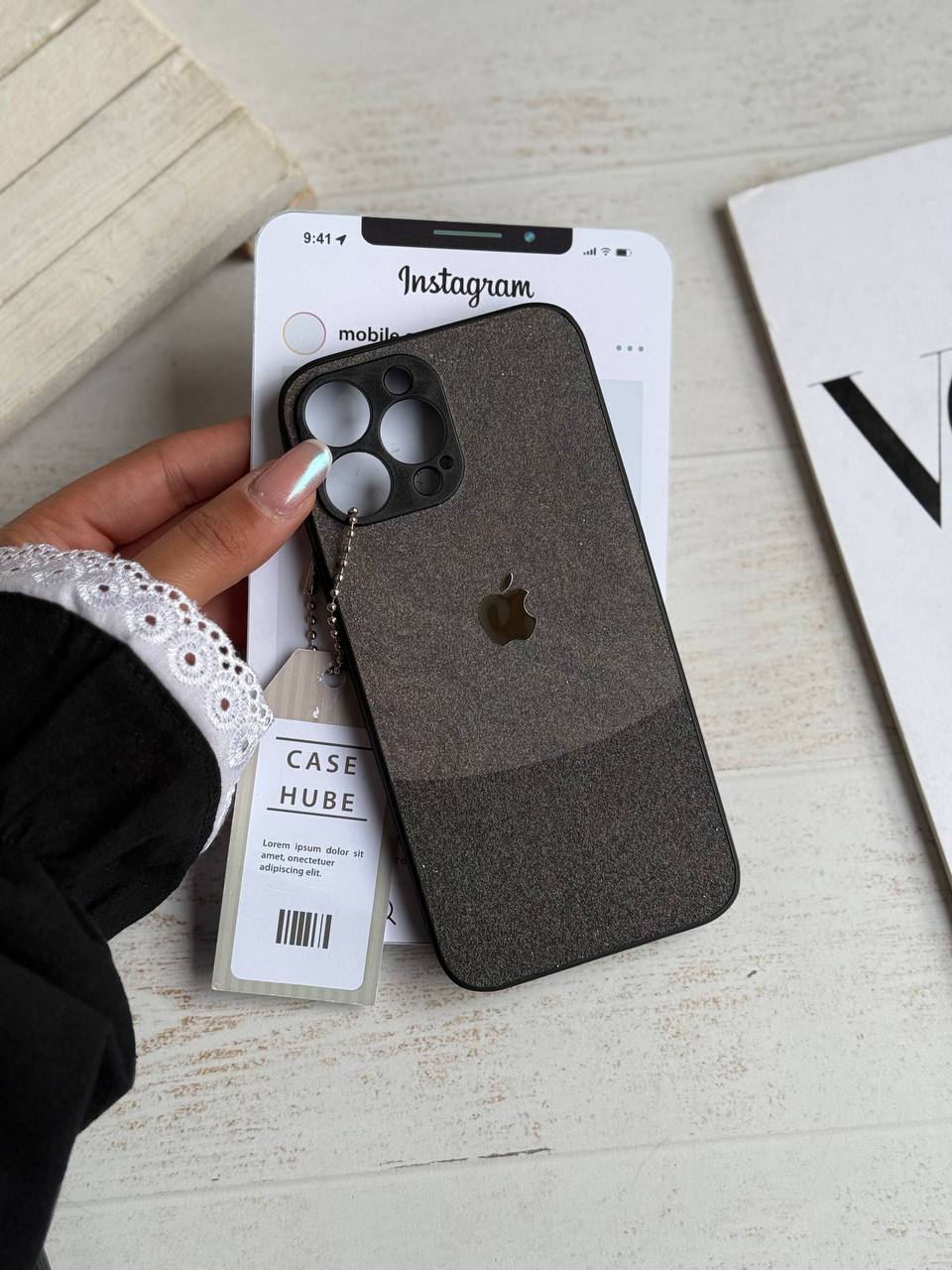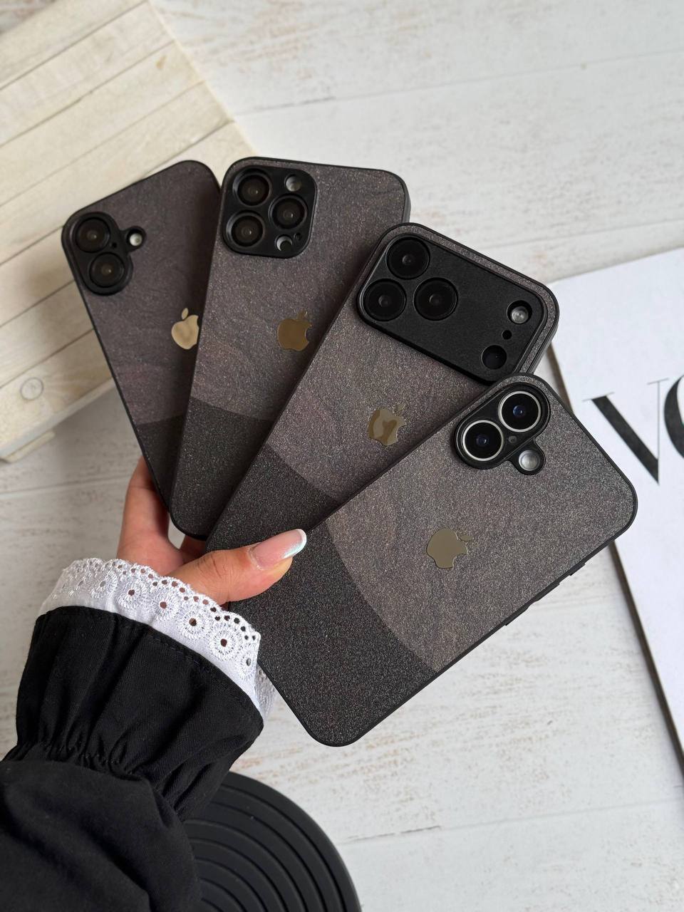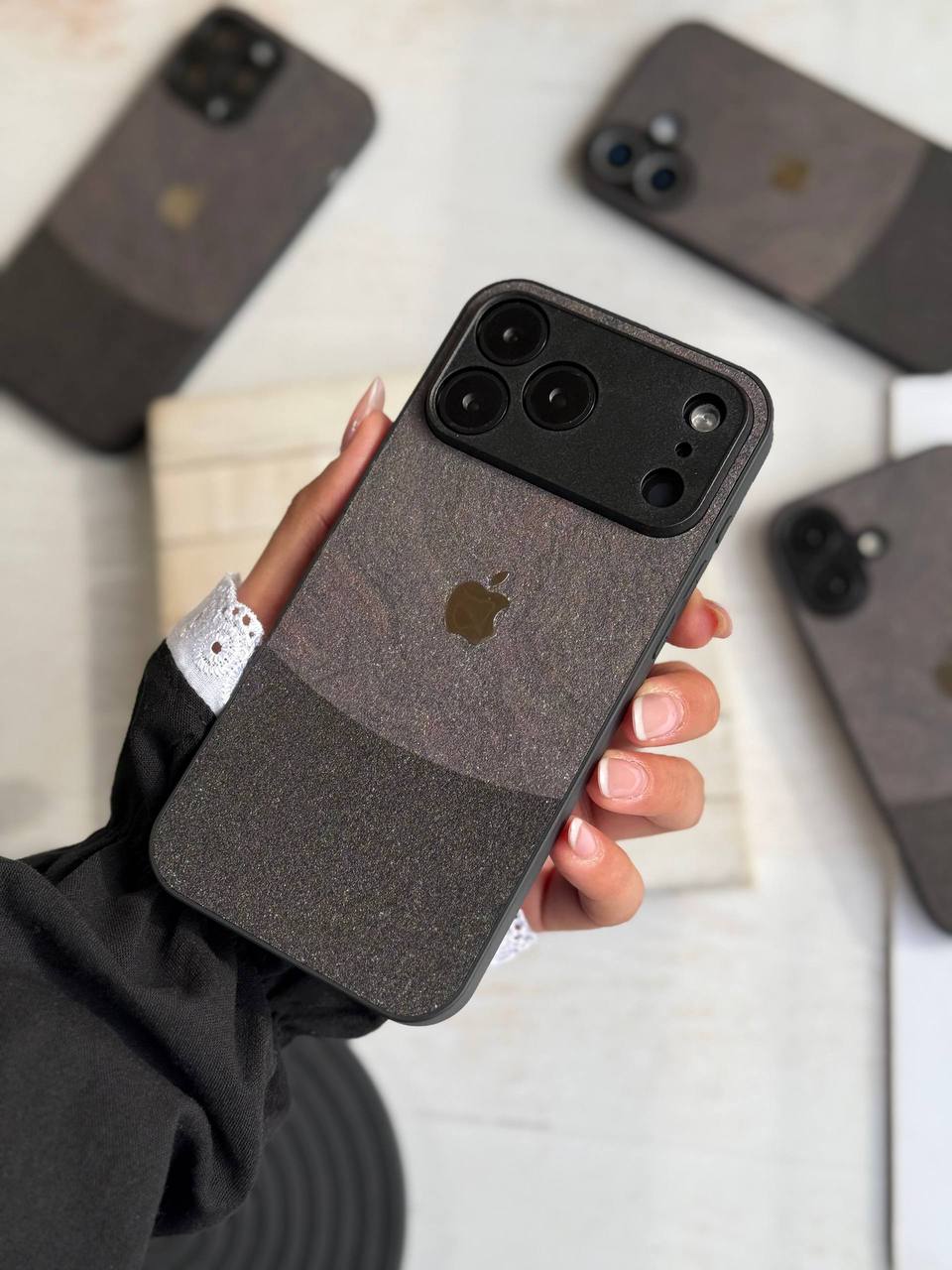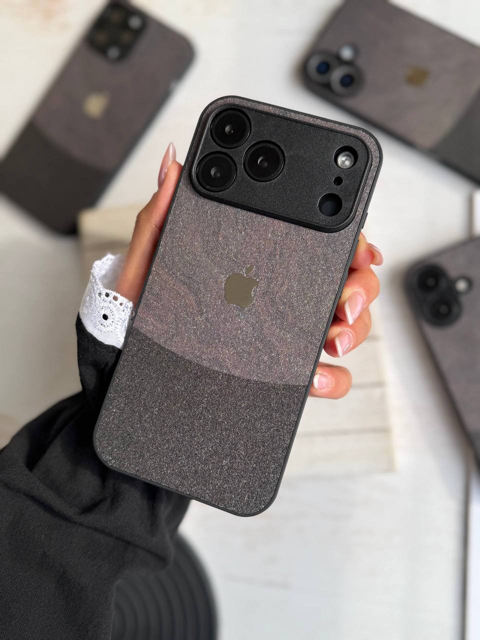 کاور گوشی مدل Dark Sand Texture لوگو فلزی (آیفون )کدC2148M