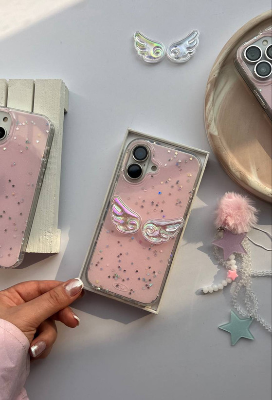 کاور گوشی مدل بال فرشته شایندار همراه با اویز بال برجسته (آیفون ) کد 201827L