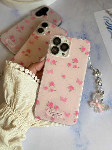 کاور گوشی مدل Pink Flower Butterfly با آویز (آیفون )کد C2116M