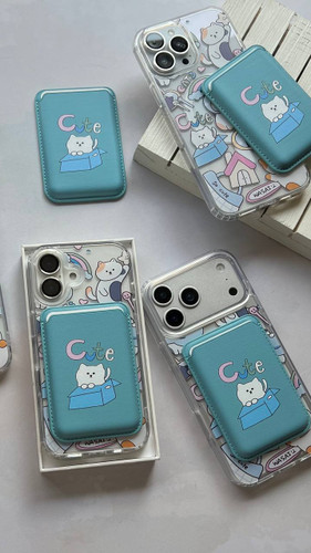 کاور گوشی مدل Cute Cat شفاف مگ سیف ساپورت جنس PC همراه با ولت چرم مگنت قوی (آیفون )کدL201821
