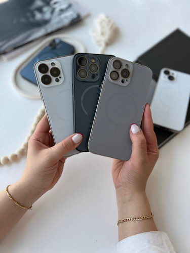 کاور گوشی مدل ink Magsafe دکمه فلزی محافظ لنز شیشه ای مگ سیف فعال داخل موکتی TPU محافظت کامل از گوشی (آیفون) کدC2186M