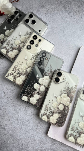کاور گوشی مدل رز سفید پشت شفاف (آیفون،سامسونگ،شیائومی ) کدL1830