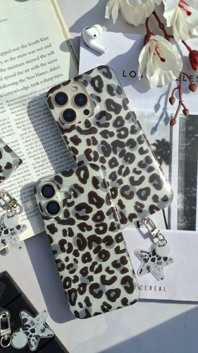کاور گوشی مدل پلنگی سفید همراه با پلاک آویز لنز باز (آیفون،سامسونگ،شیائومی ) کدL1864